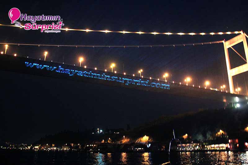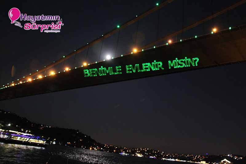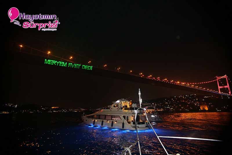 boğazda teklif, lazerle evlenme teklifi, teknede evlilik teklifi, yatta evlenme teklifi